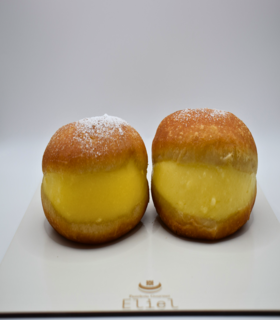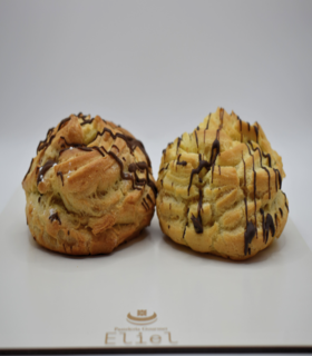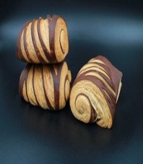 Clásico croissant francés con notas lácticas bicolor relleno con nata de vainilla tahití