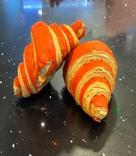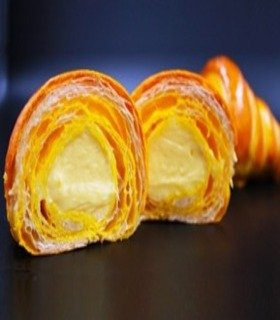 Clásico croissannt frances de color, rellena con curd de naranja