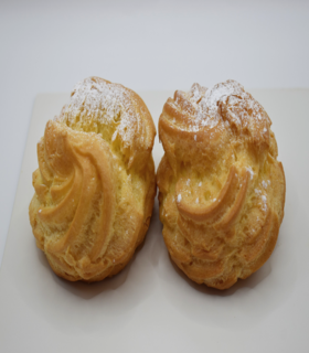 masa laminada con mantequilla, rellena de crema pastelera y pasas con esencia de haba tonka