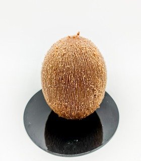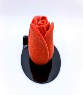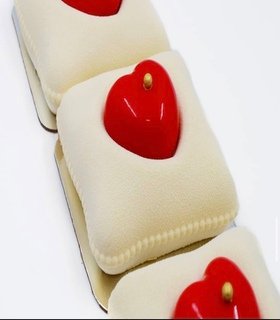 Mousse de chocolate blanco con toques de lima limón, suave inserto de jalea exótica maracuyá, mango, bizcocho de coco al vapor en un molde de 270ml.