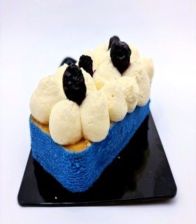 masa sable bañada con chocolate blanco, framcipane de limón y arándano cremoso de limón con vainilla ganache montada de limón .