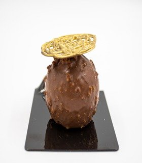 contiene praline de avellana, ganache de chocolate abatonka y mousse de chocolate de leche y café